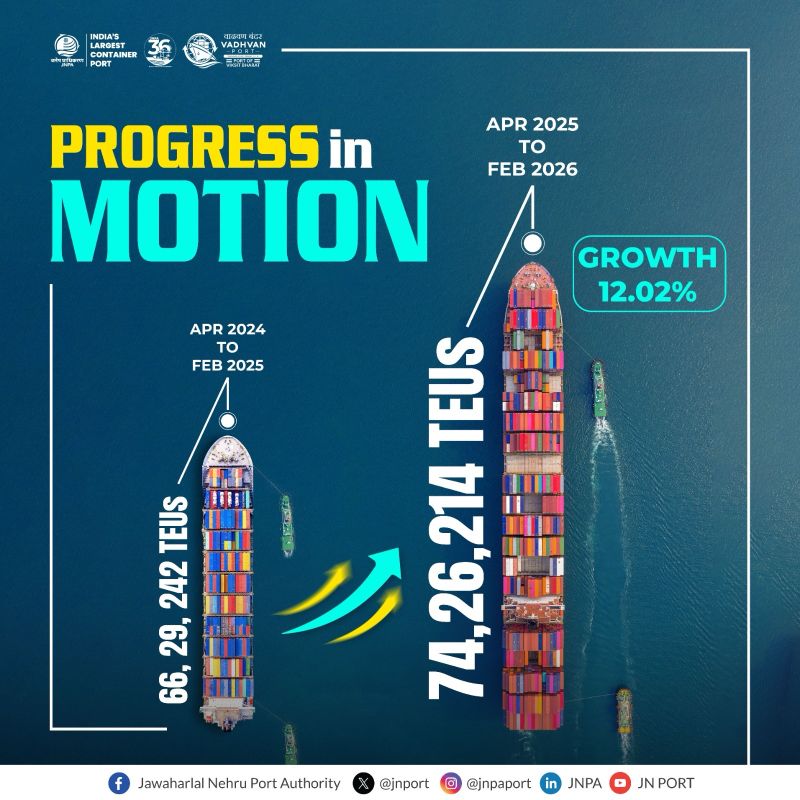 JNPA shatters all-time records, surpasses 7.33 Million TEUs in FY 2025-26