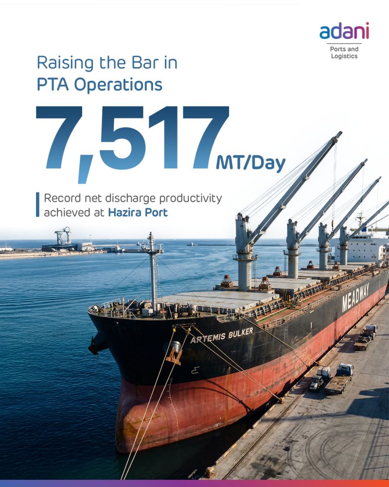 This milestone underscores Hazira Port’s capability in handling high-volume bulk cargo with speed, safety, and precision. It further reinforces Adani Ports’ commitment to delivering world-class port infrastructure, performance-driven operations, and enhanced value to customers.