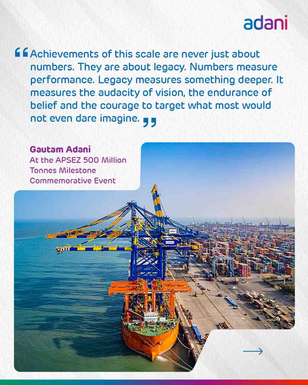 Milestones such as those achieved by APSEZ can never be measured in business terms alone. “They are about our people – about those who chose to believe in me, to walk with me and to build with me,” he said. “They are about our memories – of struggles, of victories, of setbacks – all of which came to define the Adani spirit.”