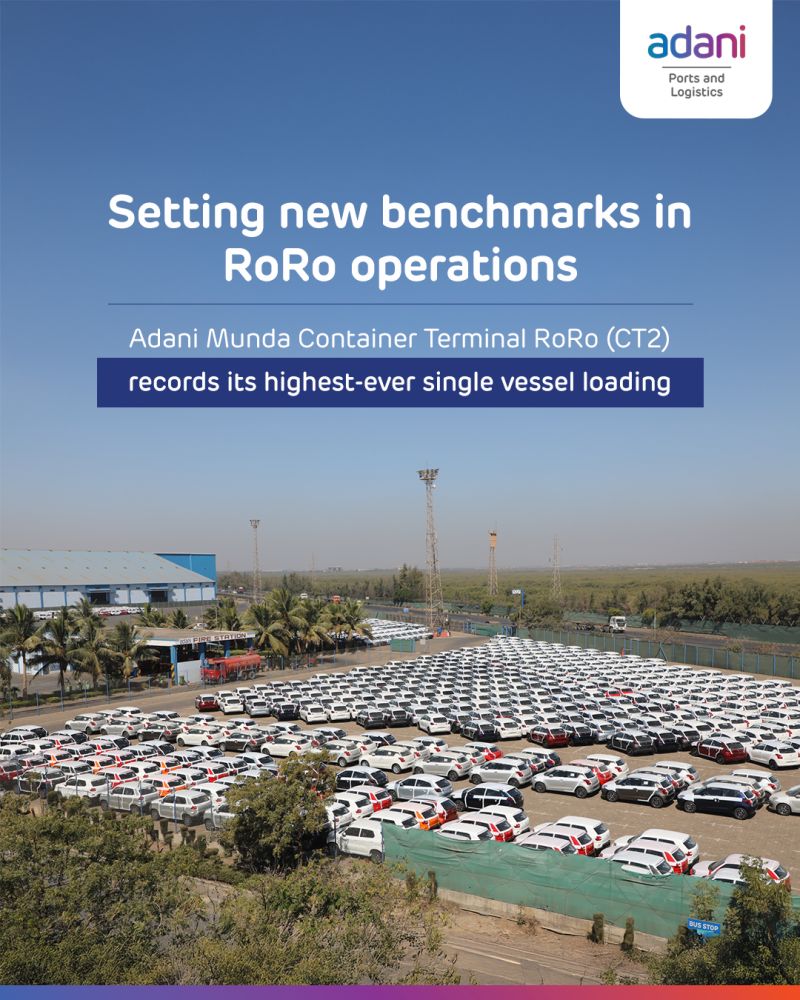 MUNDRA : January 2026 marked a significant milestone for Adani Mundra Container Terminal (AMCT) at Mundra Port, as the terminal achieved its highest-ever single vessel loading throughput. A total of 5,701 cars were successfully handled using 145 GHR, setting a new operational benchmark.
