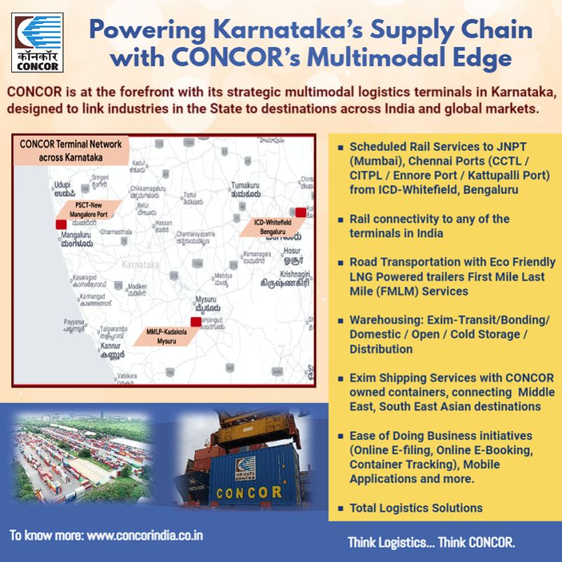 With its multimodal logistics edge, CONCOR remains committed to delivering end-to-end logistics solutions, enabling Karnataka’s businesses to scale globally with greater efficiency and competitiveness