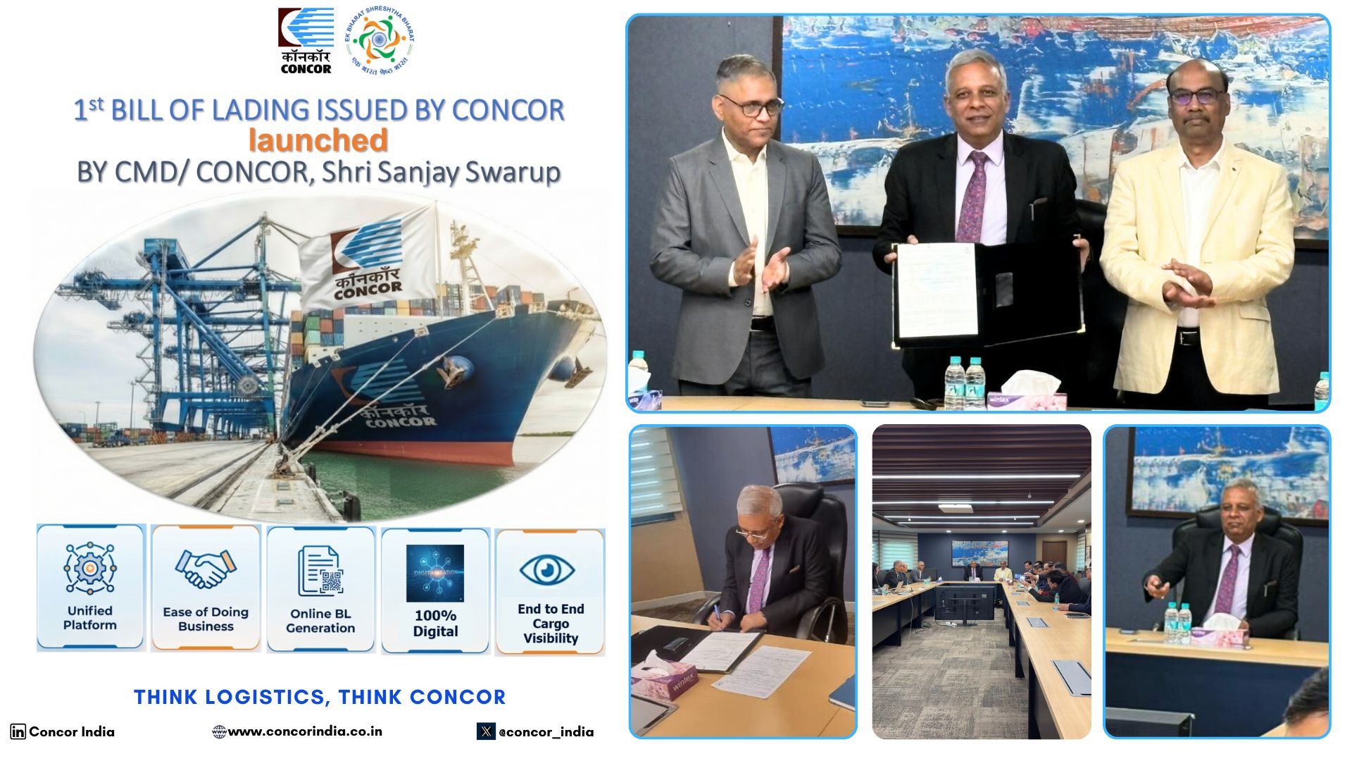 NEW DELHI : In a significant milestone for India’s multimodal logistics landscape, Shri Sanjay Swarup, Chairman & Managing Director, CONCOR, formally launched the first Bill of Lading (BL) issued by Container Corporation of India Ltd. (CONCOR) for export cargo carried in CONCOR’s own container, which has now sailed to the South East Asia region.