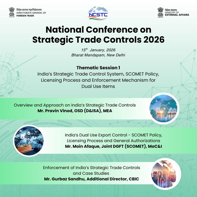 Discussions during NCSTC 2026 also covered emerging and frontier technologies, including quantum-related items, advanced computing and semiconductors, additive manufacturing, aerospace technologies and cyber security, in the context of recent updates to India’s SCOMET List and non-proliferation considerations.