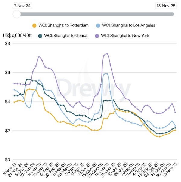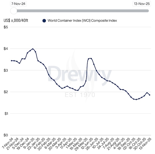 Drewry’s detailed assessment for Thursday, 13 Nov 2025