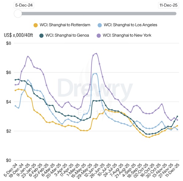 Drewry’s detailed assessment for Thursday, 11 Dec 2025