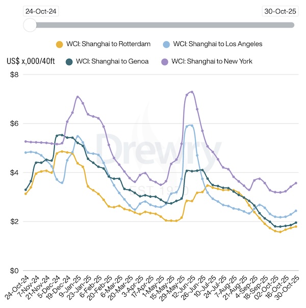 Drewry’s detailed assessment for Thursday, 30 Oct 2025