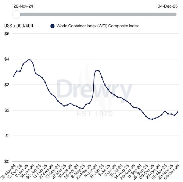 Drewry: World Container Index up 7% last week