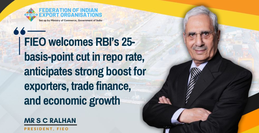 FIEO welcomes RBI’s 25-basis-point cut in repo rate, anticipates strong boost for exporters, trade finance, and economic growth
