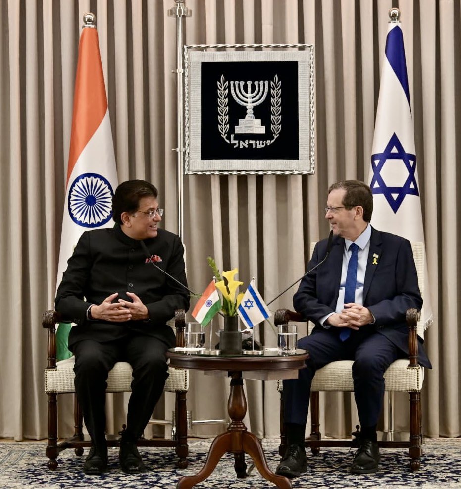 TEL AVIV: Union Minister for Commerce and Industry Shri Piyush Goyal on Sunday met with Isaac Herzog, President of Israel, to further strengthen the strategic partnership between India and Israel.
