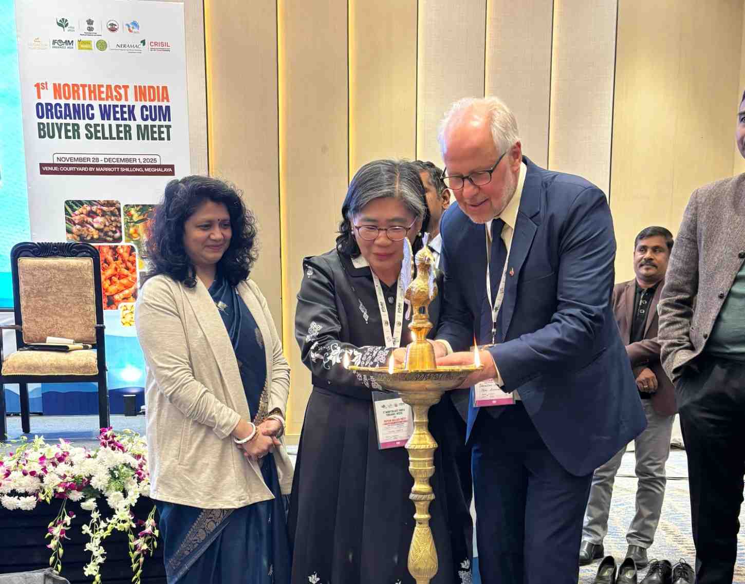 The inaugural ceremony was graced by distinguished dignitaries including Shri. Satinder Kumar Bhalla, Secretary, North Eastern Council, Dr. Vijay Kumar D, Commissioner & Secretary, Government of Meghalaya; Shri. Abhishek Dev, Chairman, APEDA; Dr. Shakil P. Ahammed, Chief Secretary, Government of Meghalaya; Smt. Saloni Verma, Deputy Secretary Government of Meghalaya, Brenden Hoare, Adviser, IFOAM Jennifer Chang, Executive Director, IFOAM Asia; Shri Bhaskar Barua, Managing Director NERAMAC, Dr. Saswati Bose, General Manager APEDA, Mathew John, President, IFOAM Asia; and Smt. Priyanka Uday, Associate Director, CRISIL.