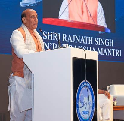 VISAKHAPATNAM : Raksha Mantri Shri Rajnath Singh has called upon the international community to effectively tackle the evolving complex & interconnected challenges at sea while acting in the spirit of mutual respect and give & take. He was addressing Navy Chiefs and Heads of Delegations from 74 countries during the inaugural ceremony of Exercise MILAN at Visakhapatnam, Andhra Pradesh on February 19, 2026.