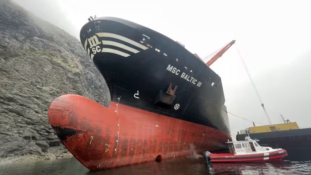 CEDAR COVE : The grounded container ship MSC Baltic III on Newfoundland’s west coast has been damaged by high winds and storm surge in the province over the last few days, according to the Canadian Coast Guard.