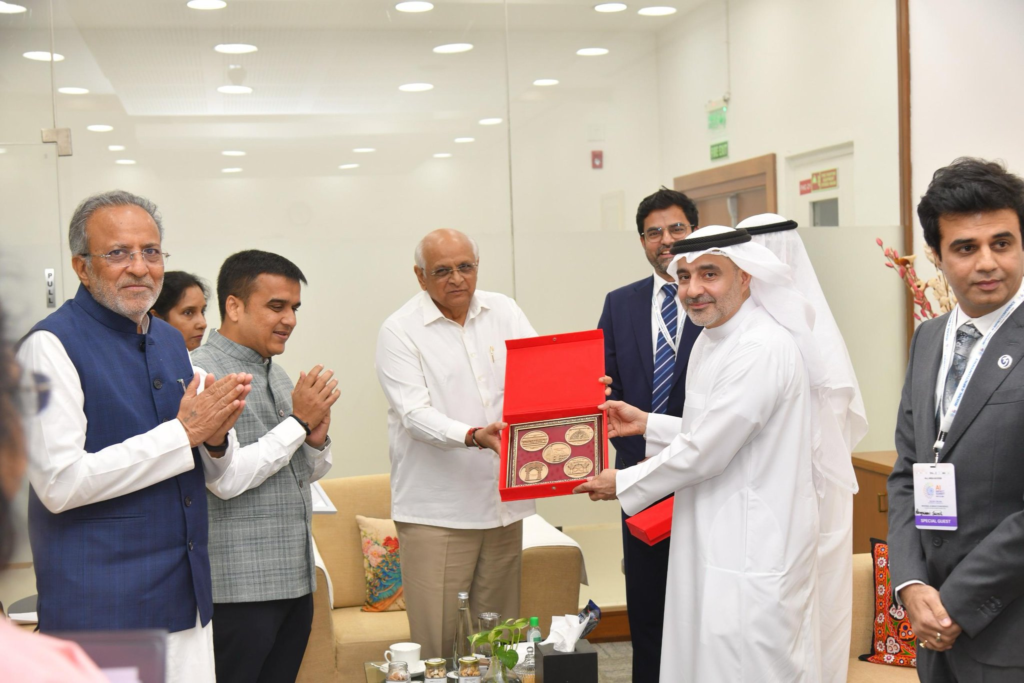 The MoU was formalised during a meeting held in Gandhinagar, where Gujarat Chief Minister Shri Bhupendrabhai Patel met Shri Sakthivel K, CEO of Henox Group, and Mr. Rashid Ali Al Ali, Executive Director of the Sharjah Communication Technologies Authority.