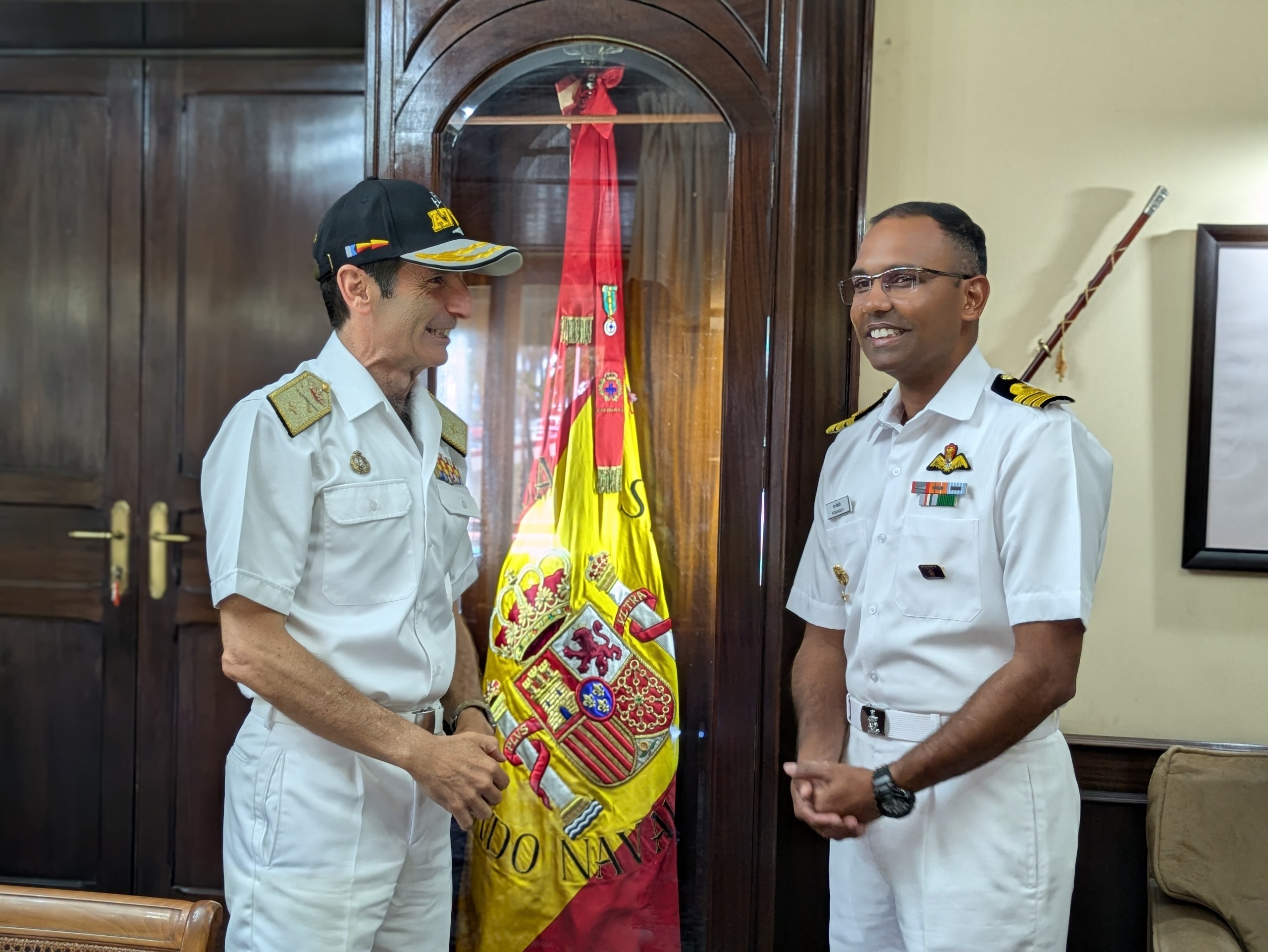The Commanding Officer, INS Sudarshini, called on RAdm Santiago de Colsa Trueba, Chief of Canary Islands Naval Command. The exchange highlighted the strengthening bilateral ties and the deepening partnership between the two navies.