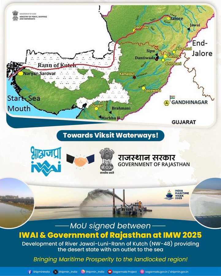 IWAI & State Govt of Rajasthan seal pact to develop Jawai–Luni–Rann of Kutch Waterway (NW-48)