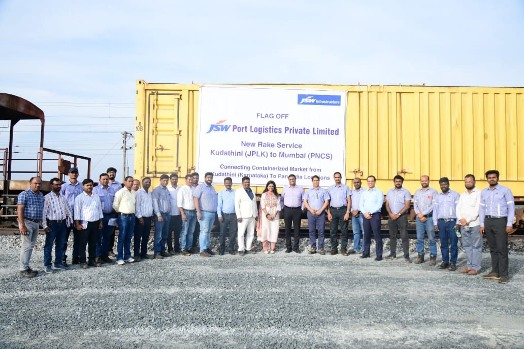 MUMBAI : The first container rake was flagged off yesterday from JSW Infrastructure Ltd.’s newly developed rail terminal at Kudathini (Bellary), Karnataka (Railway siding code: JPLK), marking the first private rail terminal in the region.