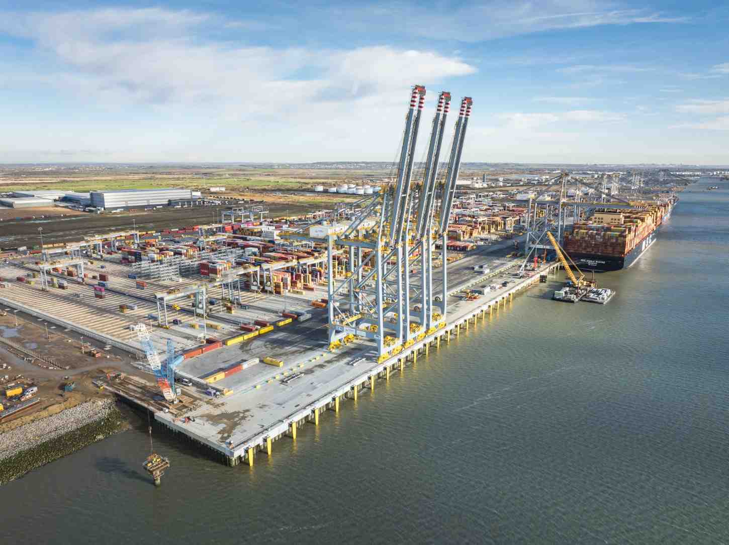 Construction is underway at London Gateway on two further all-electric berths in a £1bn investment that will take the total to six berths able to handle the world’s largest container ships. A second newly constructed rail terminal at the site started operations in 2025, while the site will also see the construction of a new BOXBAY container handling system in a £170m investment over the next two years.