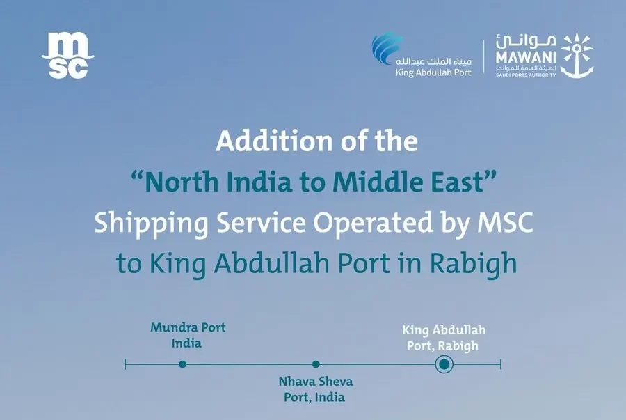 RIYADH : The Saudi Ports Authority (Mawani) announced the addition of Mediterranean Shipping Company’s (MSC) North India to Middle East shipping service to King Abdullah Port in King Abdullah Economic City in Rabigh, a move that will help strengthen the competitiveness of Saudi ports on the maritime transport map, support the smooth flow of global trade, and increase operational efficiency.
