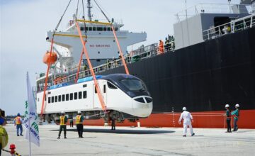 Taipei : The first of 50 new intercity express trains ordered by the Taiwan Railways Administration (TRA) arrived at Hualien Port from Japan recently and could enter service on the east coast line by