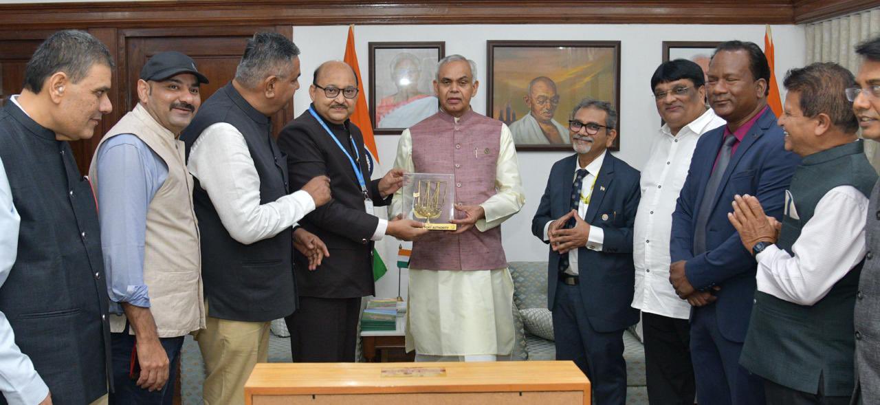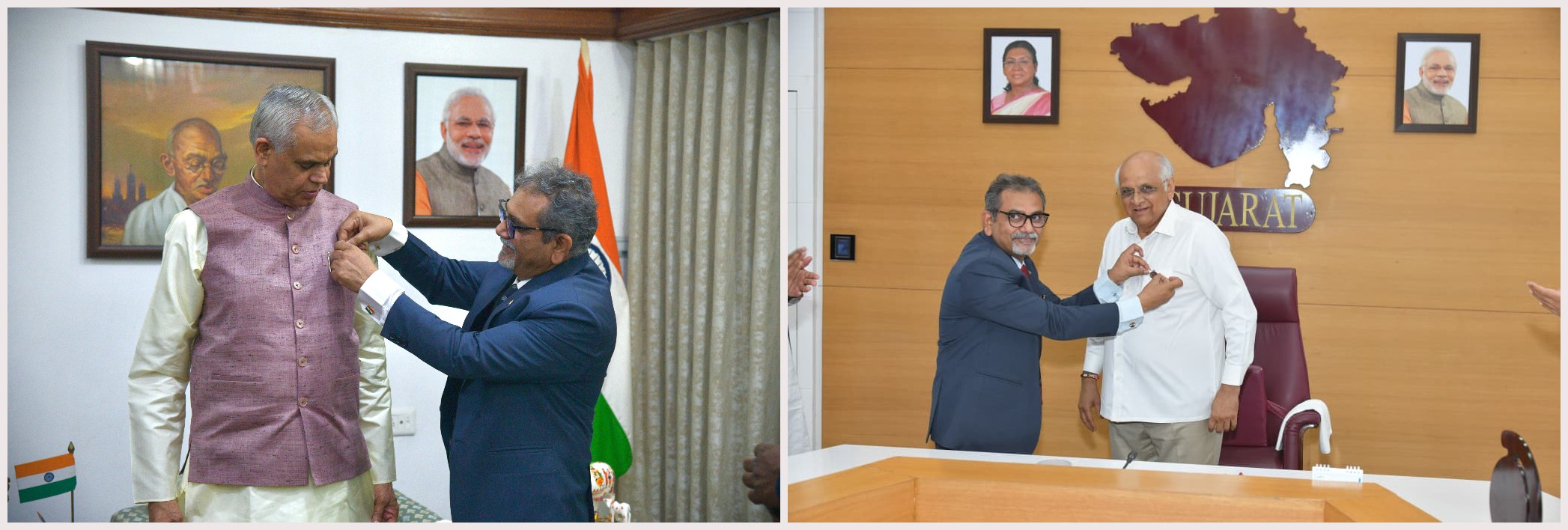 GANDHINAGAR: n a moment of pride for India’s maritime sector, the Hon’ble Governor of Gujarat, Acharya Devvrat, was felicitated with a commemorative souvenir during the Flag Pinning Ceremony as part of the 63rd National