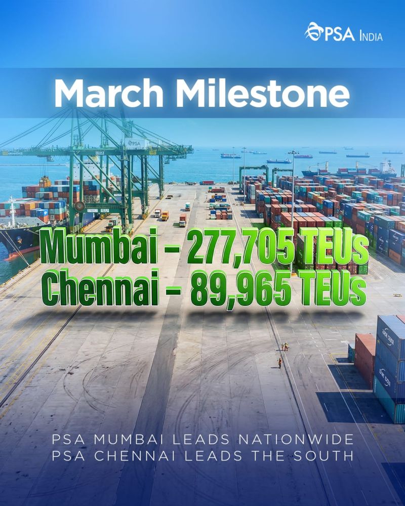 Mumbai/Chennai : PSA India has recorded its highest-ever monthly cargo volumes in March, marking a significant milestone in the company’s operational journey and reaffirming its position as a key enabler of India’s trade growth.
