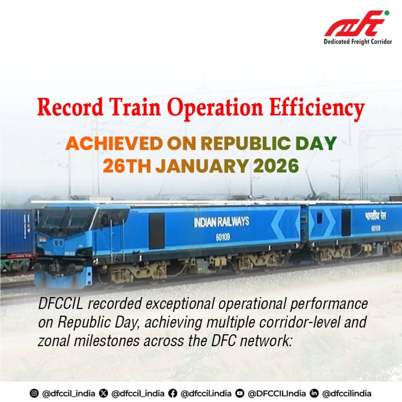 NEW DELHI : DFCCIL marked Republic Day 2026 with a landmark achievement in national freight operations, delivering record train efficiency across its network. The day witnessed the highest-ever aggregate interchange between the Dedicated Freight