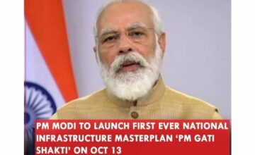 NEW DELHI : Prime Minister Shri Narendra Modi will launch the first ever National Infrastructure Masterplan, Pradhan Mantri Gati Shakti tomorrow, on Wednesday Oct 13. The Gati Shakti scheme was announced by Mr Modi