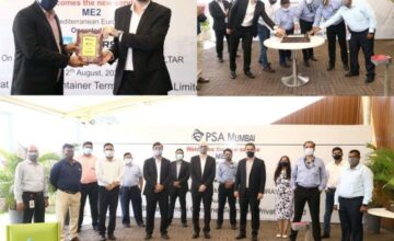 MUMBAI : PSA Mumbai welcomed the inaugural call of Maersk Line’s ME2 service with the arrival of the 10,100-TEU “Maersk Gibraltar” on 12th August 2021. The ME2 marks PSA Mumbai’s eighth weekly call and