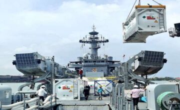 NEW DELHI : As part of Operation Samudra Setu II, INS Shardul, the Indian Navy ship of the Southern Naval Command, arrived in Kochi on Thursday with four ISO containers carrying 87 MT of