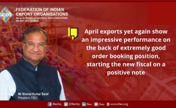 NEW DELHI : Reacting to the trade data of April, 2021, Mr Sharad Kumar Saraf, President, FIEO said that the impressive growth reiterates our assessment that order booking position of our exporters is extremely