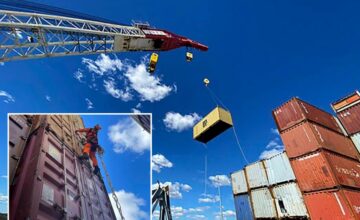BALTIMORE : Workers on Sunday began removing containers from the giant cargo vessel that remains pinned under the metal remains of Baltimore’s Key Bridge, nearly two weeks after the ship struck the bridge and