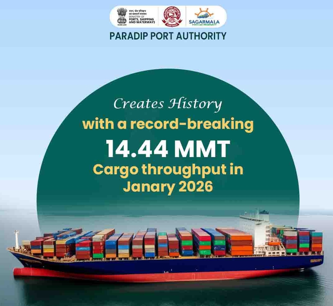 PARADIP: Paradip Port Authority (PPA) has begun the year 2026 with a landmark achievement by recording its highest-ever cargo handling for the month of January. The Port handled 14.44 million metric tonnes (MMT) of cargo during the month, surpassing its previous January record of 14.32 MMT achieved in 2024.