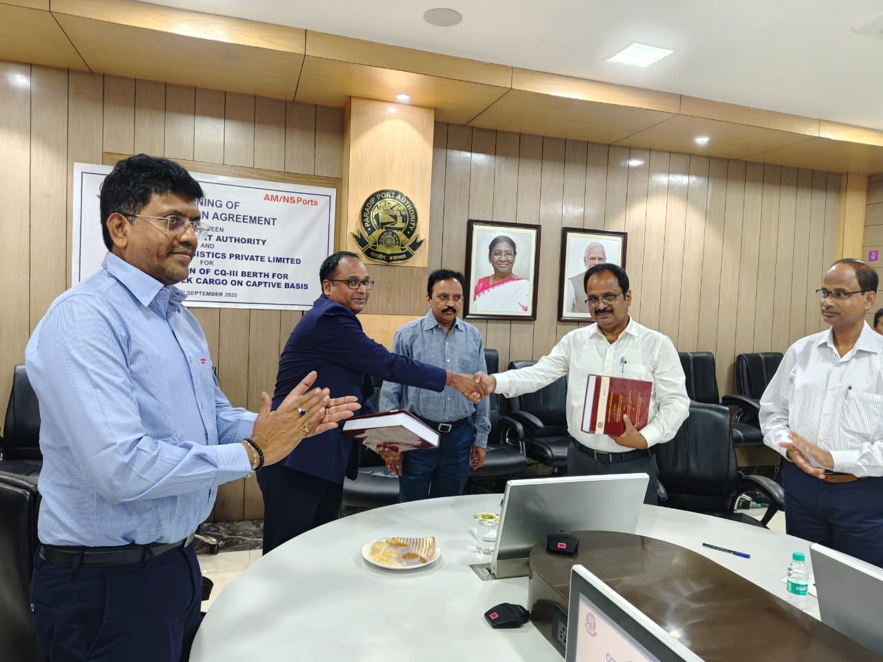 The project is for a concession period of 30 years. It envisages the shipment of iron ore pellets of AM/NS India through mechanised conveying and a ship loader system equipped with state-of-the-art handling facilities. The agreement highlights a strong, long-term commitment to sustainable and efficient cargo handling.
