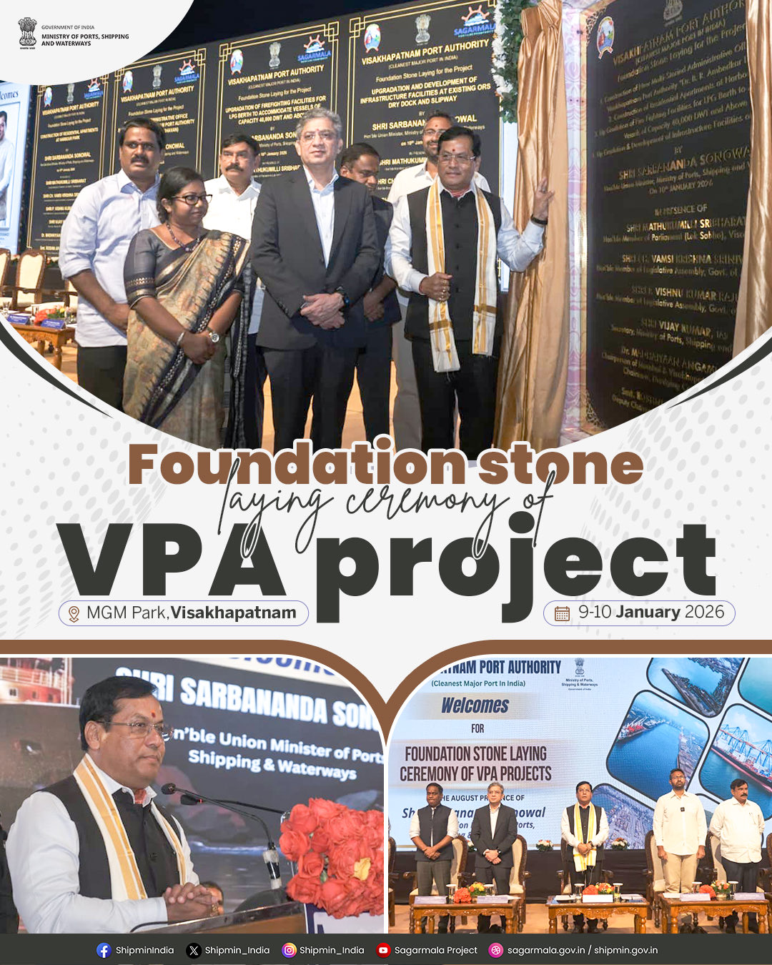 VISAKHAPATNAM : During the 3rd Indian Lighthouse Festival, Shri Sarbananda Sonowal, Hon’ble Union Minister of Ports, Shipping & Waterways, laid the foundation stone for a series of major infrastructure development projects worth ₹230 crore at the Visakhapatnam Port Authority (VPA). The ceremony was held at MGM Park, Visakhapatnam, marking a significant milestone in the port’s modernization and capacity enhancement journey.
