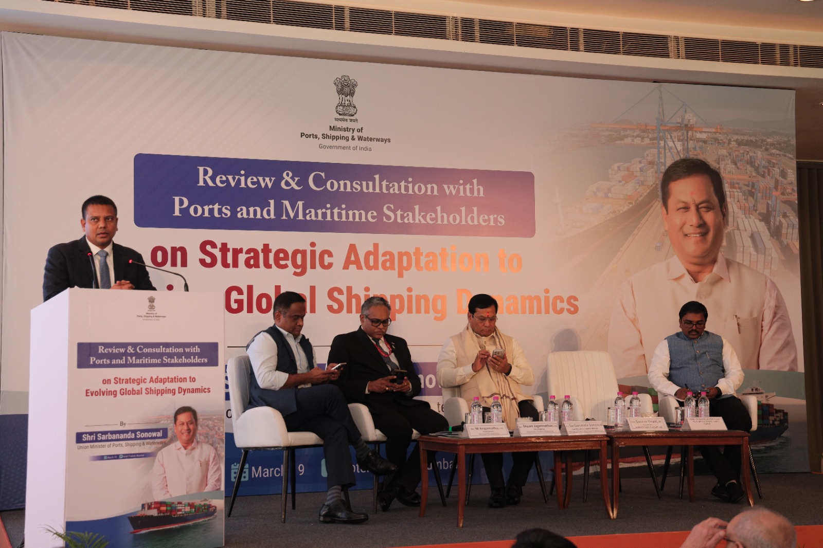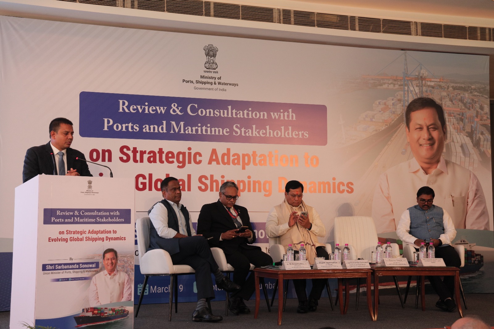 MUMBAI : Hon’ble Union Minister for Port, Shipping and Waterways, Shri Sarbananda Sonowal, chaired a review and consultation meeting with port and maritime stakeholders on Thursday, March 19th, 2026. The meeting focused on strategic adaptation to the evolving dynamics of global shipping.