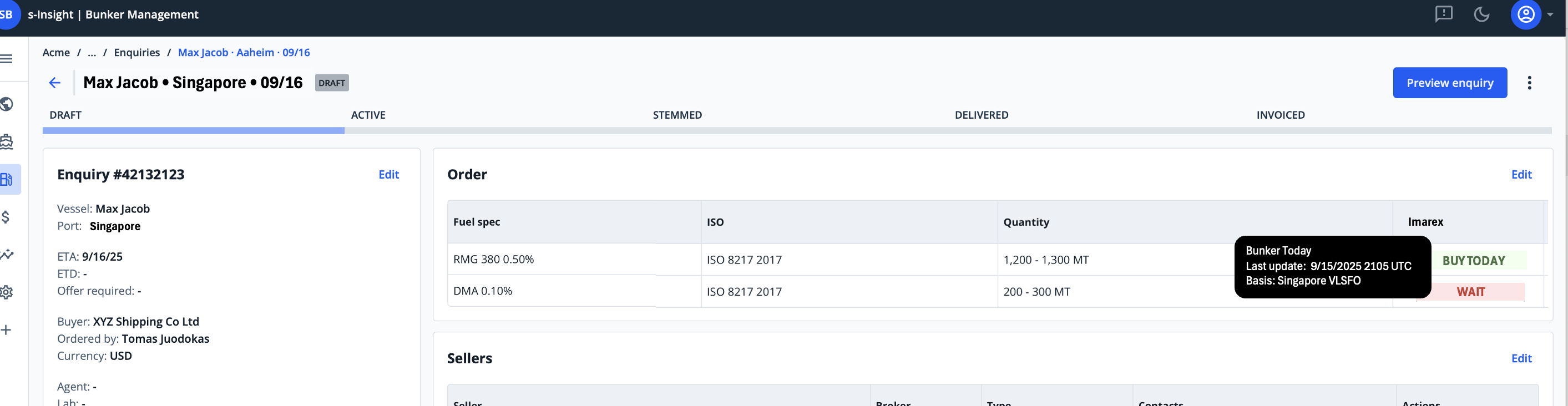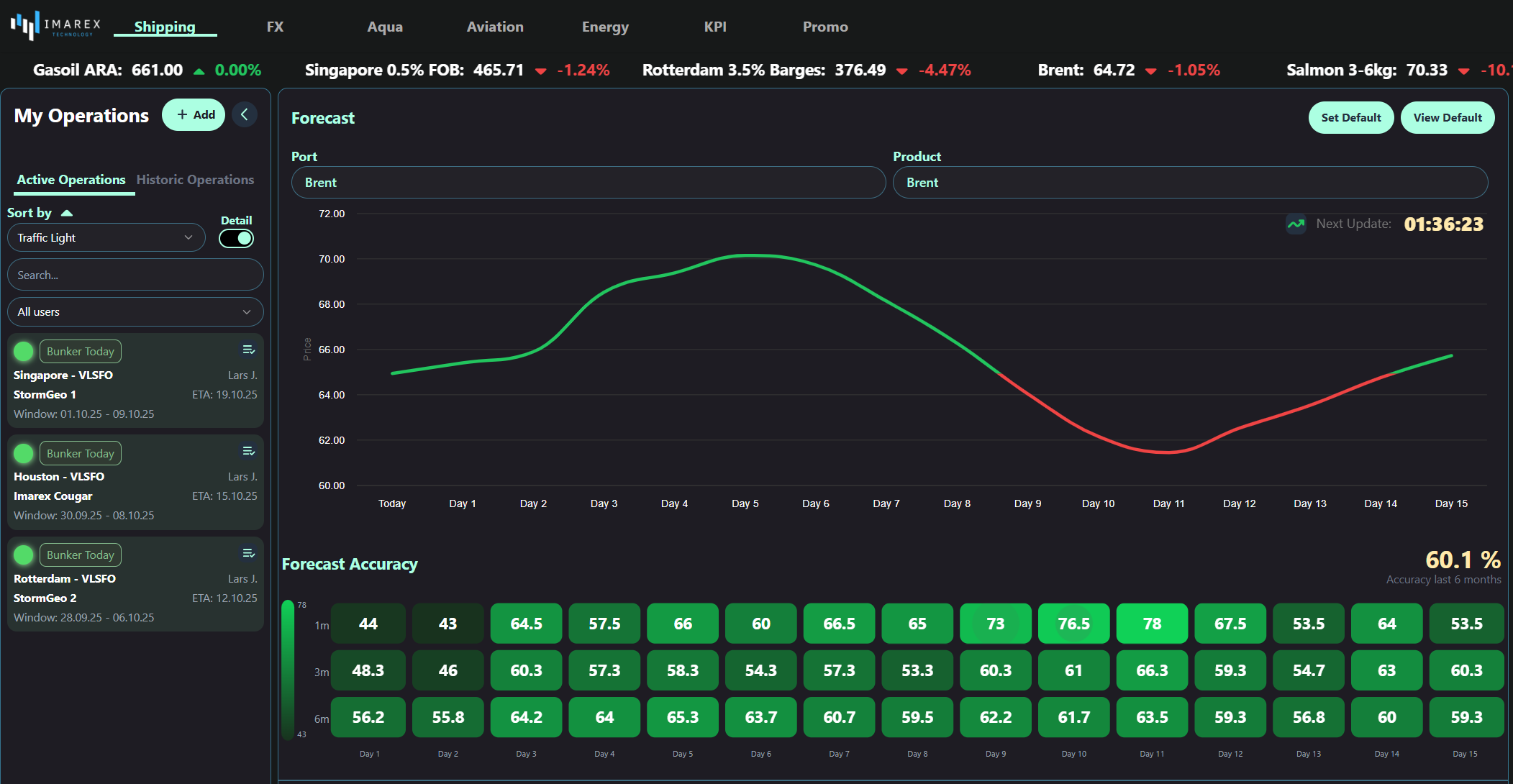 StormGeo’s Bunker Management solution already supports the full bunker lifecycle – from planning and optimization to RFQ handling, documentation, and claims. By embedding Imarex’s predictive Traffic Light signals, users will now gain an added layer of market timing intelligence directly within the same workflow.