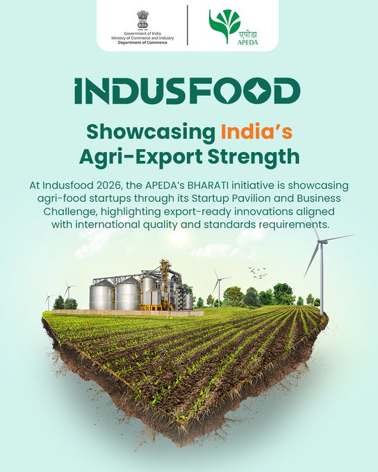 NEW DELHI : The Agricultural and Processed Food Products Export Development Authority (APEDA), under the Ministry of Commerce & Industry, Government of India, participated in IndusFood 2026, during which it organised the BHARATI Startup