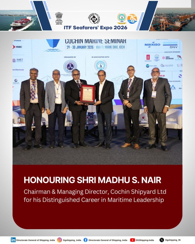 MUMBAI : The Directorate General of Shipping, under the leadership of Shri Shyam Jagannathan, Director General of Shipping, places on record its deep appreciation and sincere gratitude to Shri Madhu S. Nair, Chairman and