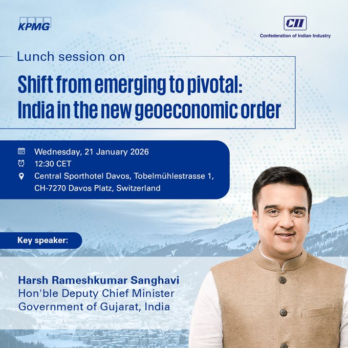AHMEDABAD: Gujarat Deputy Chief Minister Shri Harsh Sanghavi on Sunday evening left for Davos, Switzerland, to attend the 56th Annual World Economic Forum summit. Gujarat Deputy Chief Minister Harsh Sanghavi said that the Gujarat