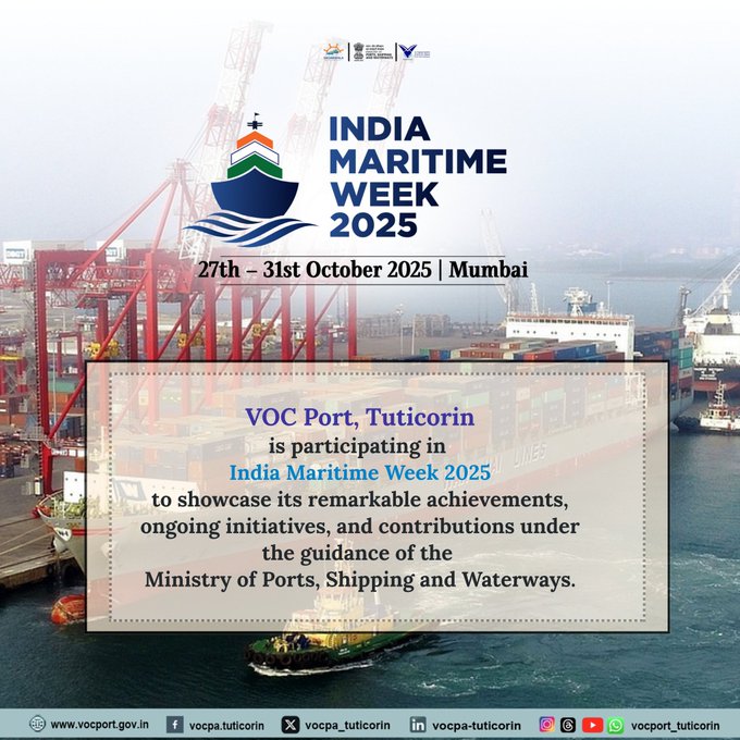 VOC Port will participate in India Maritime Week 2025, a flagship event that highlights India’s growing maritime strength, innovation, and global competitiveness.