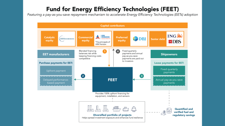 Scaling FEET will create a virtuous cycle: as the fund grows in size and its projects diversify, financing costs will decrease, and richer performance data on EET will be generated. This, in turn, will spur further innovation and deliver greater benefits for shipping companies, investors and EET manufacturers.